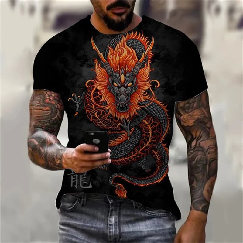 Europe and America Man Streetwear Dragon Printed Short Sleeve Summer Men's Hip Hop T-shirt Casual Clothing Harajuku O-Neck Top