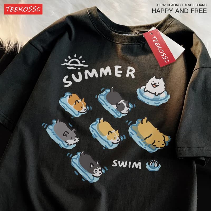 Kawaii Oversized Pattern Y2K New Retro Pure Cotton Print Tee Shirt Women Round Neck Loose T-shirt Men Street Couple Clothing Top
