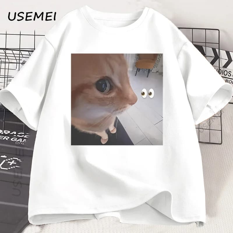 Silly Cat Meme T Shirt Funny Graphic Tee Men Women Harajuku Short Sleeve Cotton Tshirt O-neck Summer Casual T-Shirt Streetwear