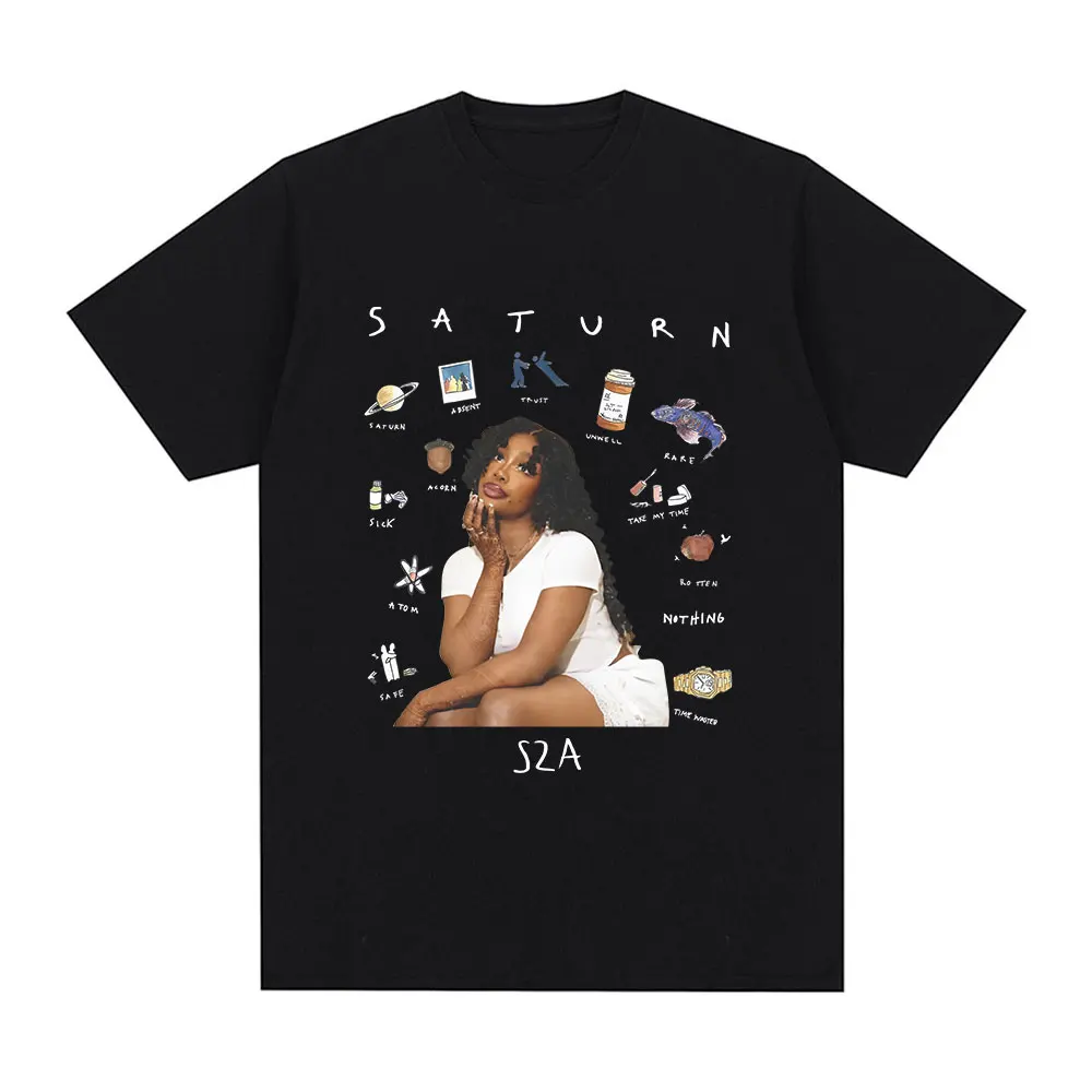 SZA Saturn Music T-shirts Men Women Fashion Hip Hop Harajuku T-shirt Cotton Oversized Short Sleeve T Shirts Fans Gift Streetwear