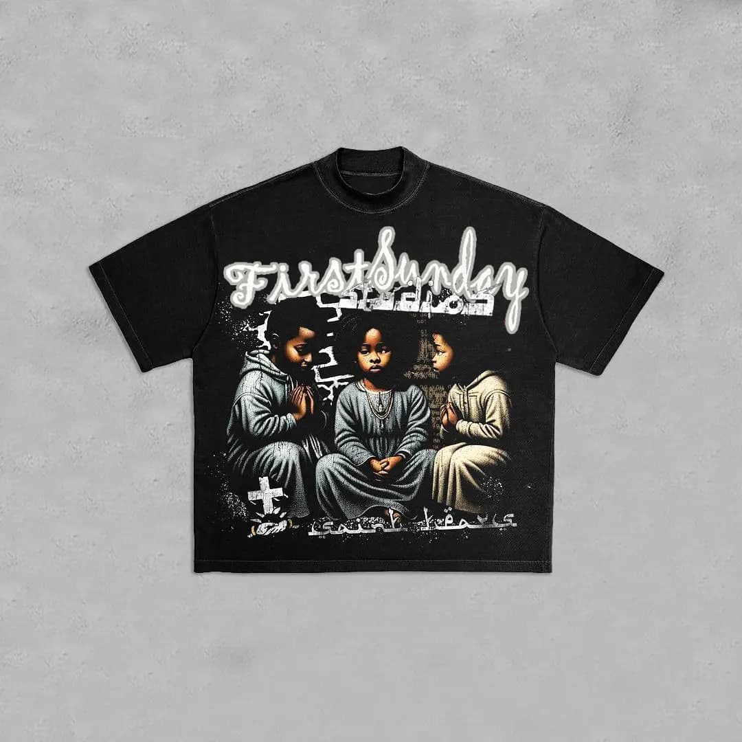 European and American Hip Hop Y2k Top Sunday Print Pattern Cotton T-shirt Men's and Women's Harajuku Retro Top