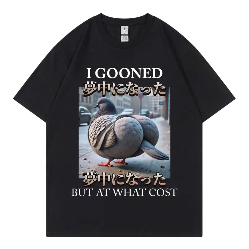 I Gooned But At What Cost Funny Pigeon Meme T Shirt Harajuku Japanese Style T-shirt Men Women Casual Fashion Oversized T-shirts